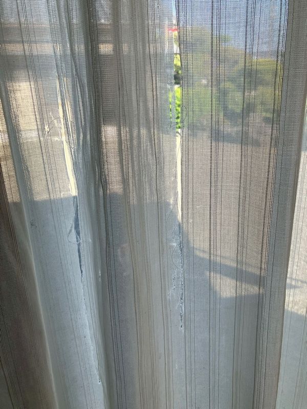 14年の年月を経て、朝日が当たる東面のレースカーテンだけが劣化で破れてしまいました。
