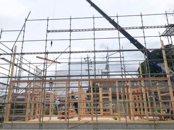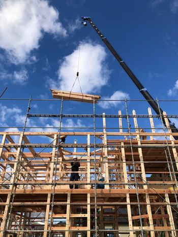 基礎ができ土台を据えたあと吉日に柱を1本建て、いよいよ上棟日をむかえました。
