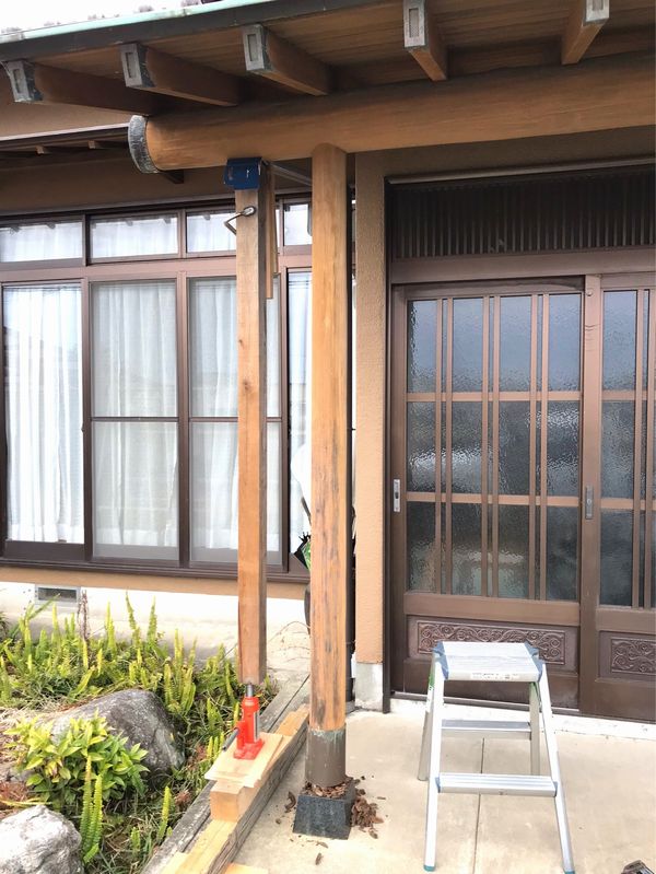 仮柱をかって、新しいポーチ柱に交換します。