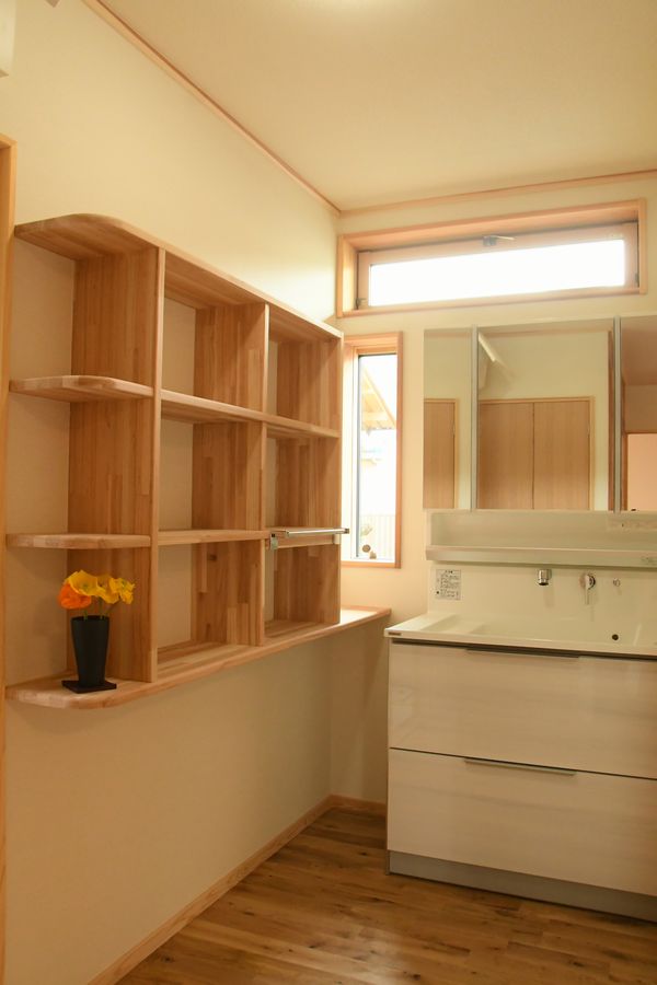 二世帯住宅ということもあり部屋数が9つもあるため、エアコンをつけると室外機が9個も並ぶ状況になってしまうところ、ヤマタケさんから全館空調にもなる「パッシブエアコン」の事を教えてもらいました。これが本当に快適で、夏は涼しく、冬は暖かいです。部屋はもちろんトイレも脱衣室も同じ温度でびっくりするくらいです。温度ムラが少なく体にも良さそうです。おかげで室外機も減らせましたね(笑)