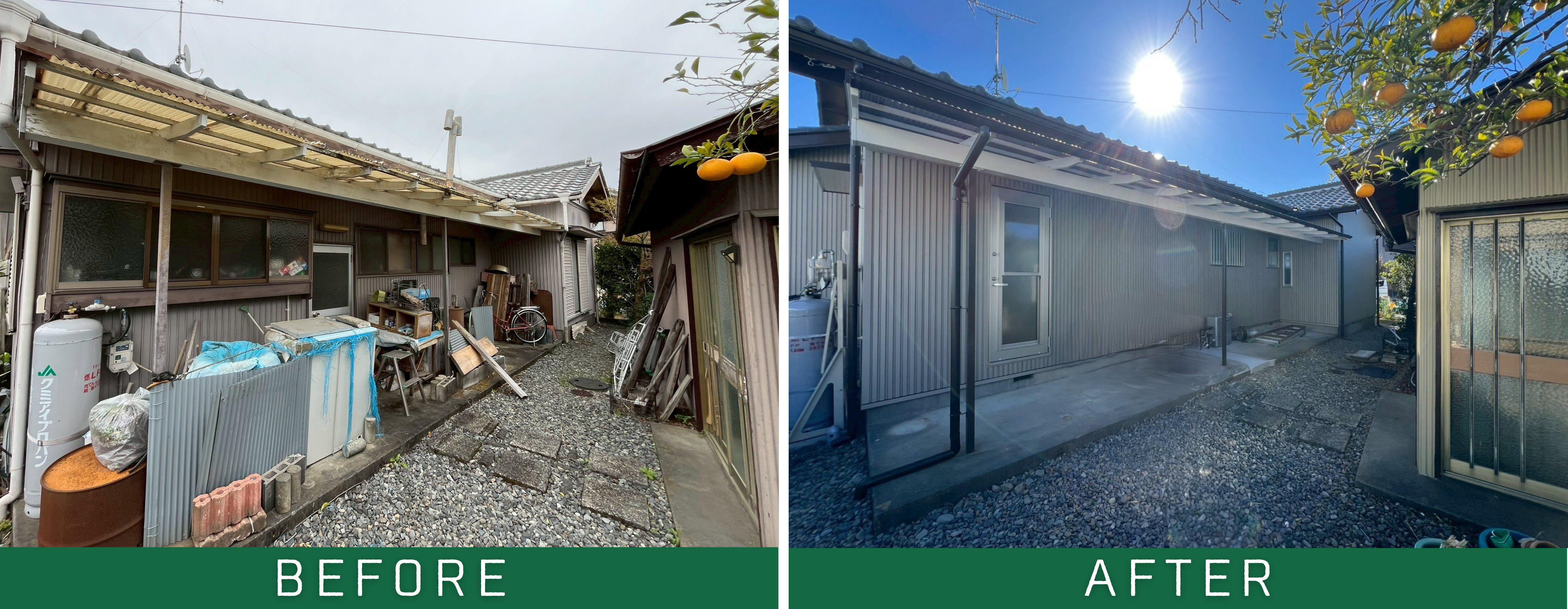 ▼テラス屋根(骨組みを塗装し、張替え。補助金を活用した外窓交換を行いました)