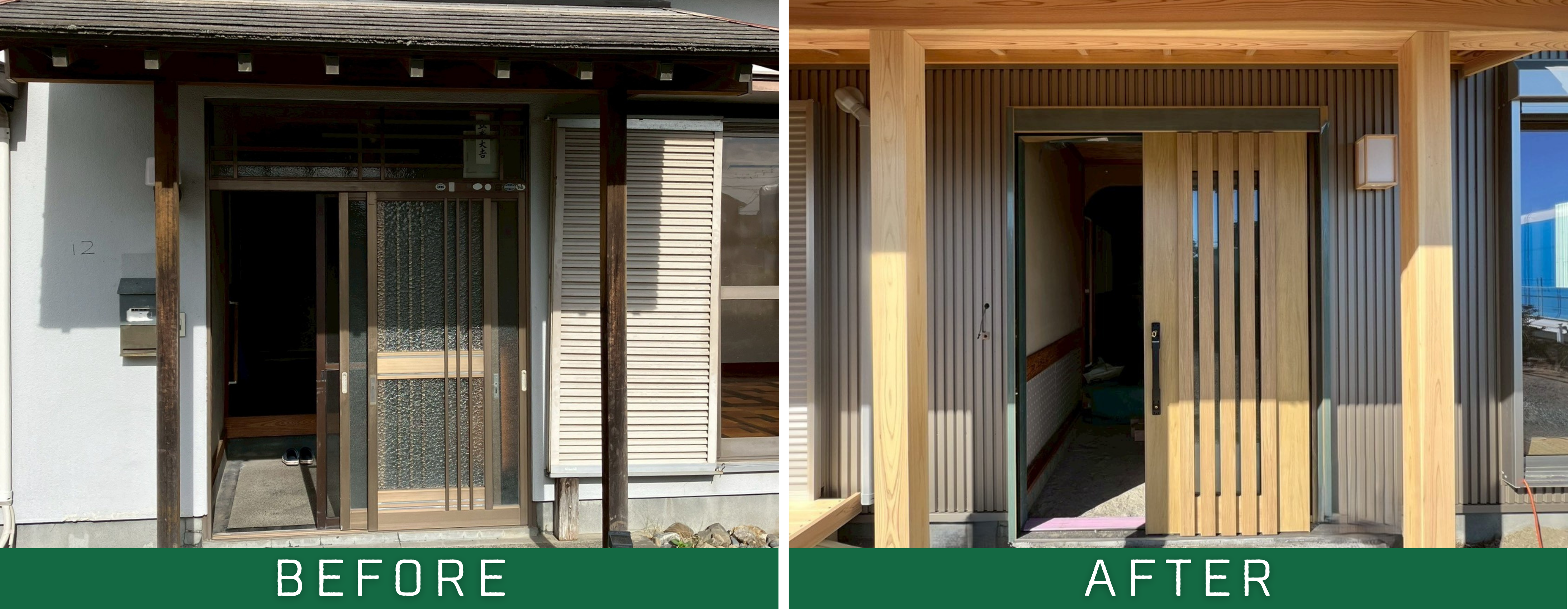 ▼玄関(↑の勝手口、こちらの玄関ドアも開口部の断熱改修の補助対象です)