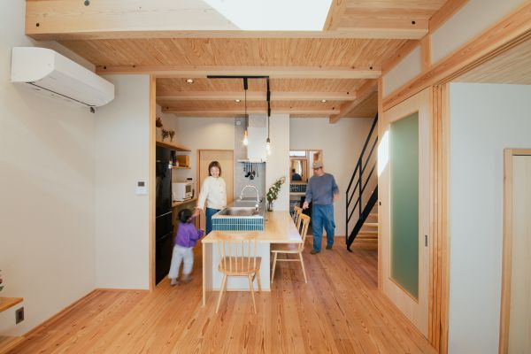 ご夫婦とお子さまが暮らす木の温もりあふれる住まいです。