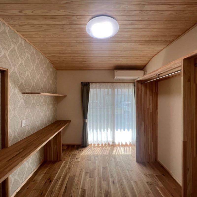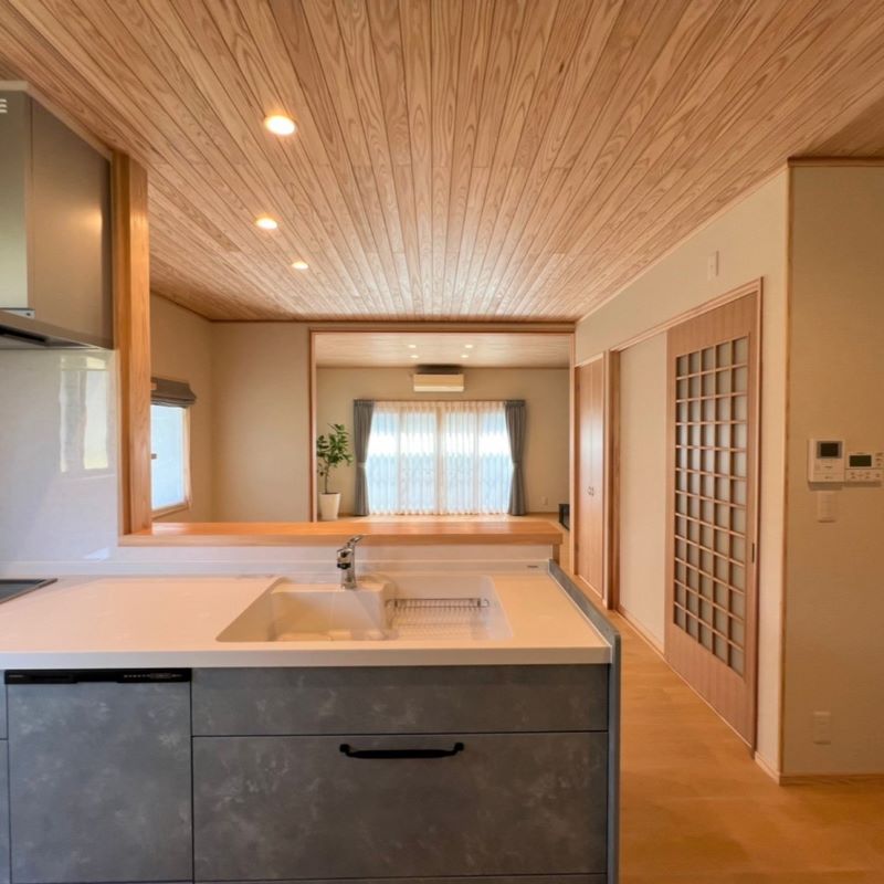 LDKがワンルームの広い空間になり、対面キッチンからぬくもりのある杉の天井と木目調のフロアタイルを眺めることができ、とても気に入っています。