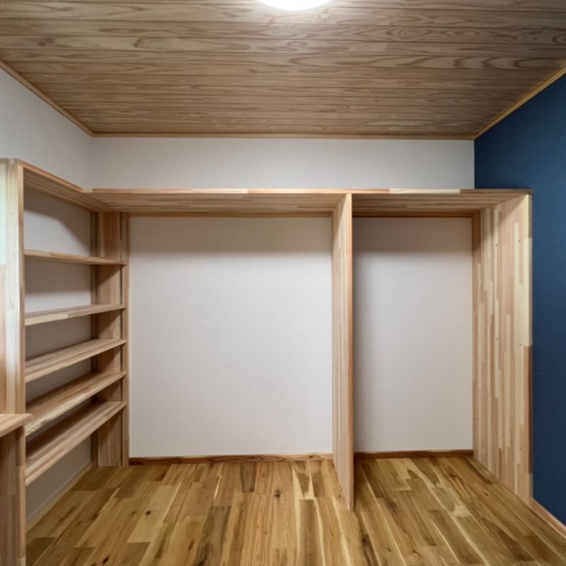 収納もいろんなところに作ってもらって、うまく片付いています。本棚なども足りないかと思っていたのですが、たくさん棚を作ってもらったのでまだまだ収納できます。