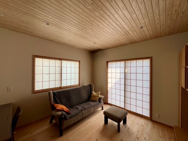 和室から全面杉板張りのWICに。杉板に包まれたここちよさに「ここで寝ることにする」とお施主さま