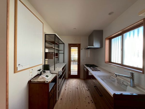 お風呂や洗面を広くしたことで狭くなったキッチンは、まったく窮屈にならない配置に
