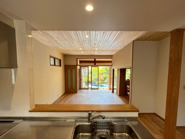 使用する機会の減った二間続きの和室をやめ、LDKを広くしました。和室と中廊下によって暗くなっていた北側のリビングも南側のLDKとなり、明るくなりました。
